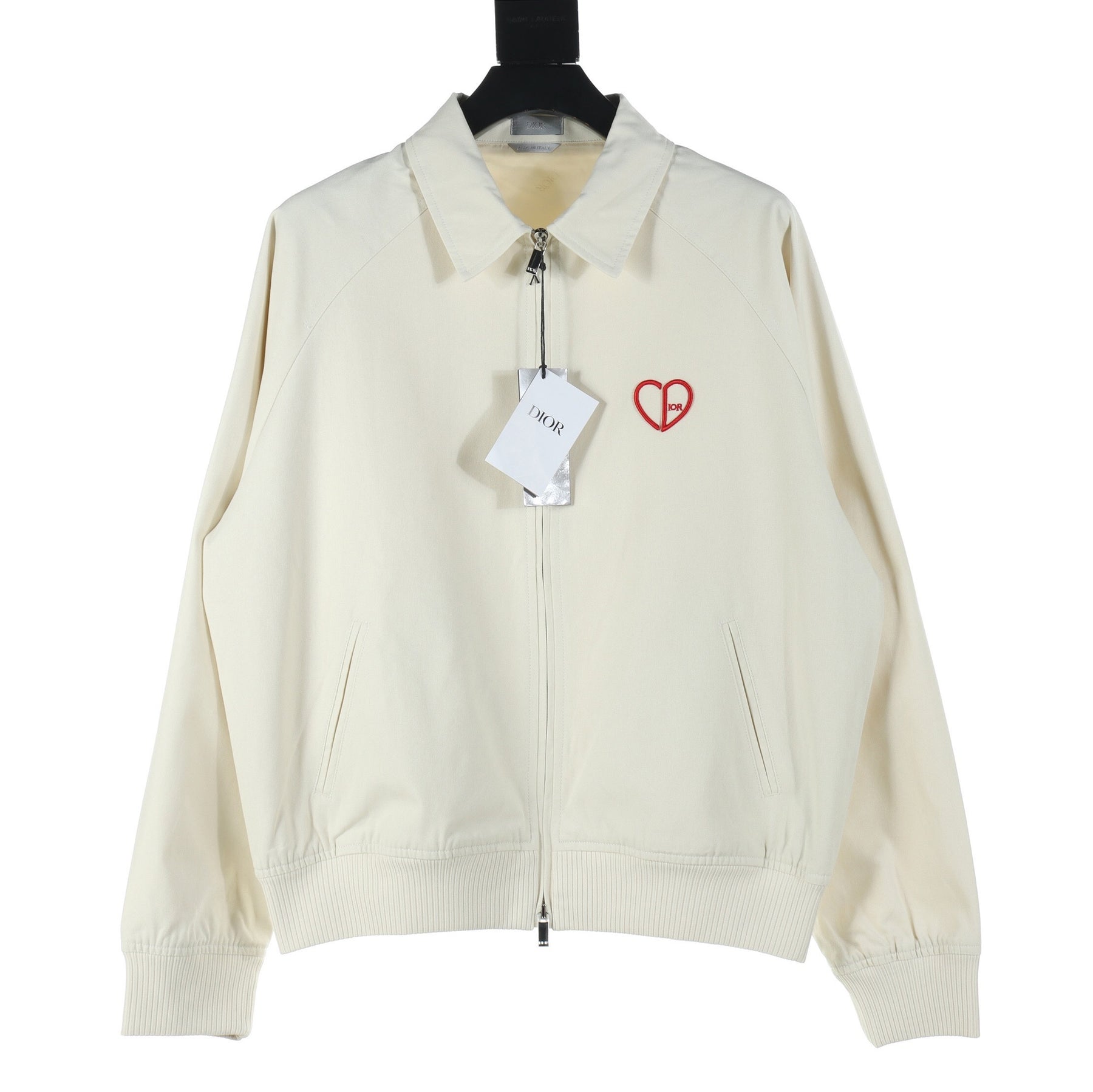 A stylish jacket featuring a signature CD red heart embroidered detail on the chest. Crafted with a clean, modern silhouette and premium finish, this piece delivers understated luxury with a playful edge—perfect for elevating everyday fits.